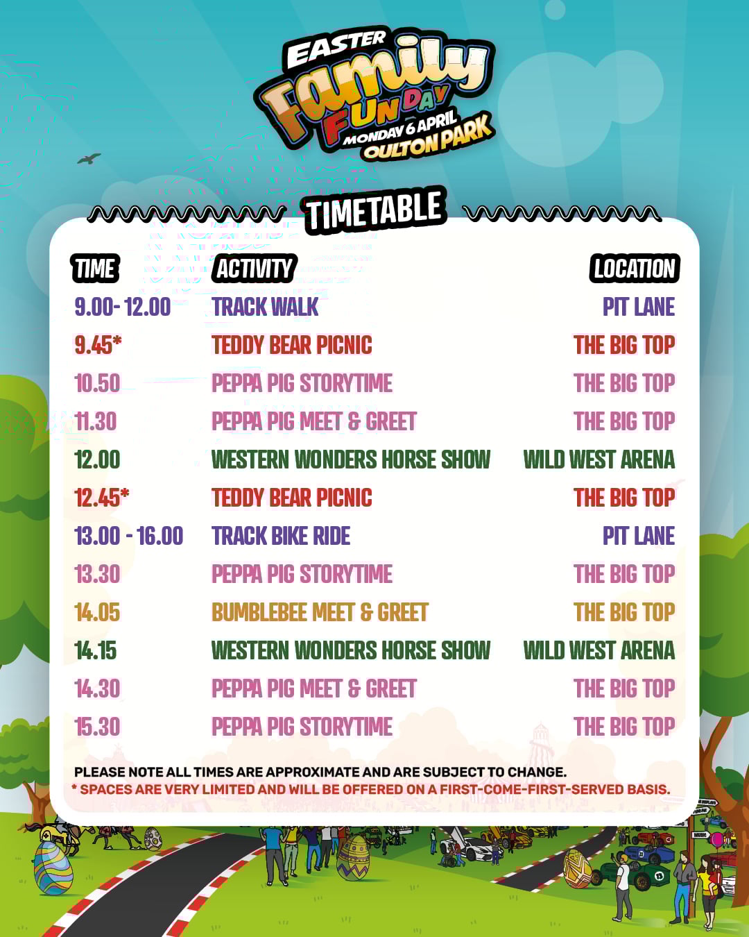 The lovable Peppa Pig will be coming to the Oulton Park Easter Family Fun Day! Come and meet Peppa at intervals throughout the day and gather round for delightful presenter-led story times, bringing her charming adventures to life for little ones and families to enjoy together.